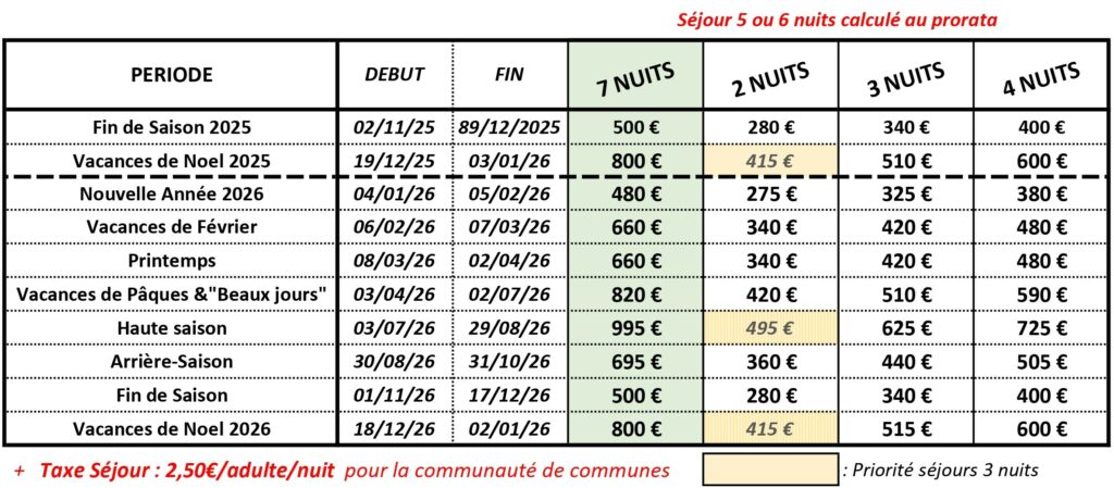 VOIR LES DISPONIBILITES POUR CHAQUE GÎTE SUR NOTRE PLANNING