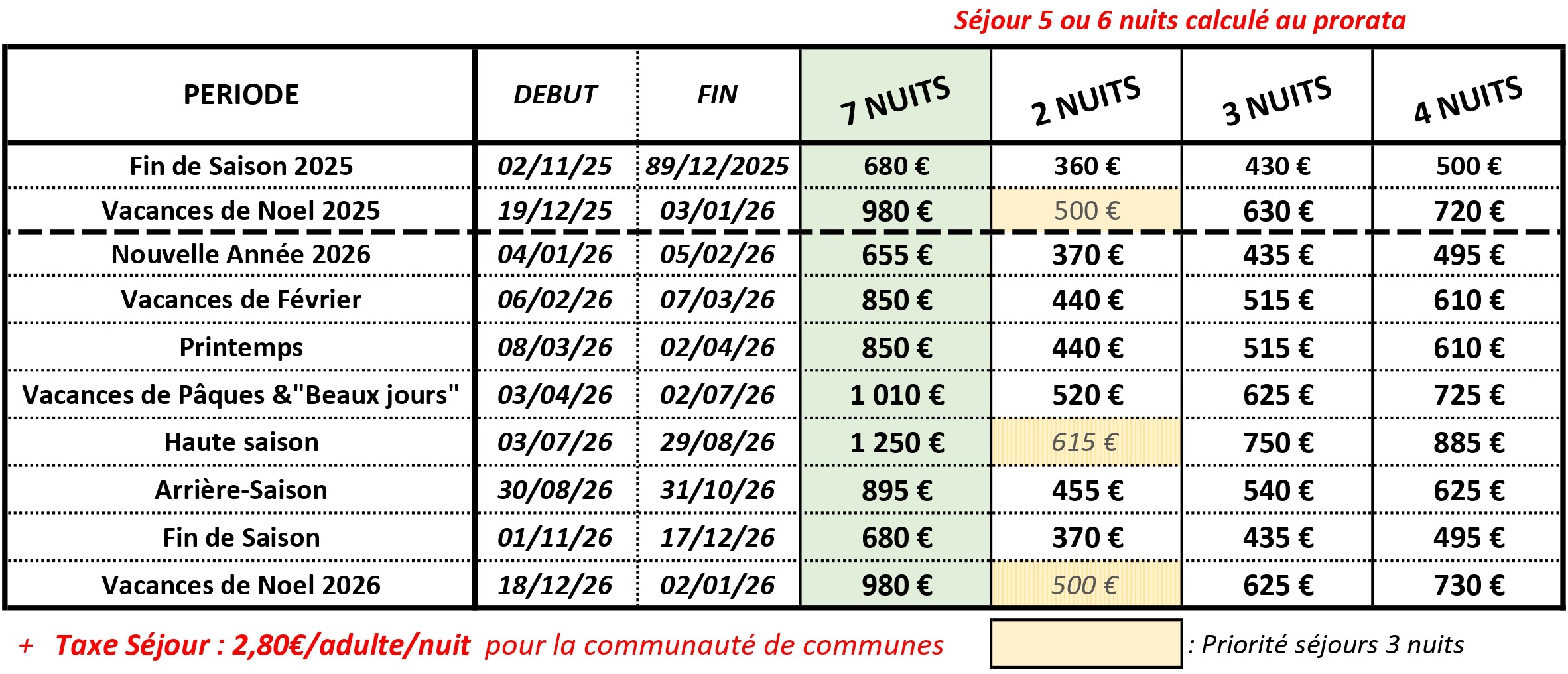 VOIR LES DISPONIBILITES POUR CHAQUE GÎTE SUR NOTRE PLANNING